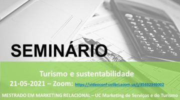Seminário (21/05/2021) Título do evento: Turismo e sustentabilidade Oradores: Professora Fernanda Oliveira e Professor Edgar Lameiras Resumo da comunicação: ver cartaz Horário de realização da comunicação: 19h00 – online – https://videoconf-colibri.zoom.us/j/85632349002 Organizadores do evento: Mestrado em Marketing Relacional – UC Marketing de Serviços e do Turismo