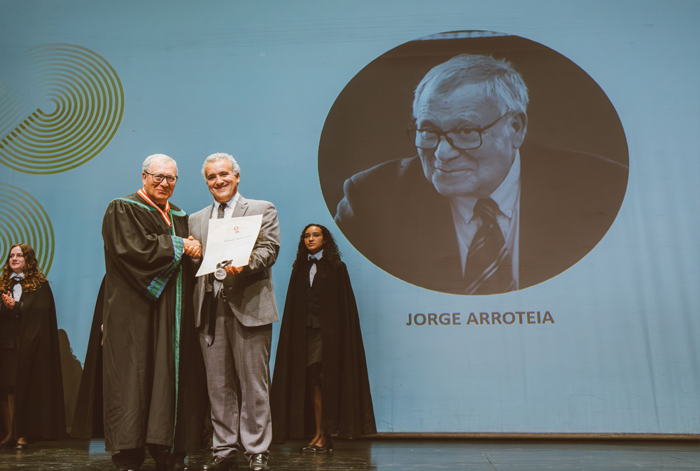 A cerimónia contou também com a entrega dos títulos honoríficos ‘Professor Honoris Causa’, a Acácio de Sousa, atual presidente da Assembleia Municipal de Leiria, e ao professor Jorge Arroteia, bem como a atribuição do Diploma de Instituição de Mérito, com a Distinção de Mérito Socioprofissional, à Associação Empresarial da Região do Oeste (AIRO).