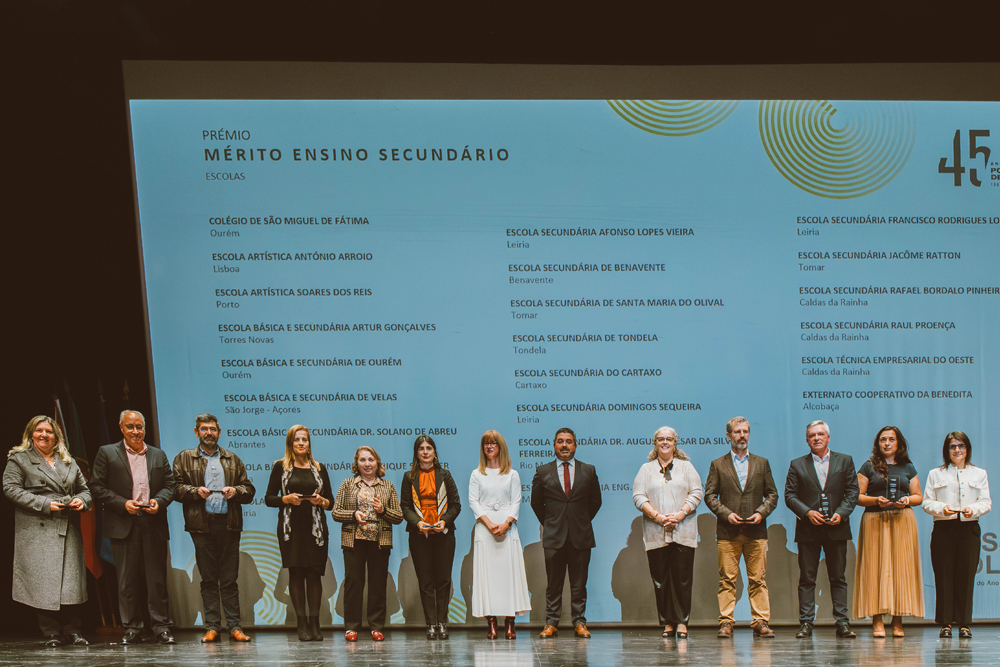 A cerimónia contou também com a entrega dos títulos honoríficos ‘Professor Honoris Causa’, a Acácio de Sousa, atual presidente da Assembleia Municipal de Leiria, e ao professor Jorge Arroteia, bem como a atribuição do Diploma de Instituição de Mérito, com a Distinção de Mérito Socioprofissional, à Associação Empresarial da Região do Oeste (AIRO).
