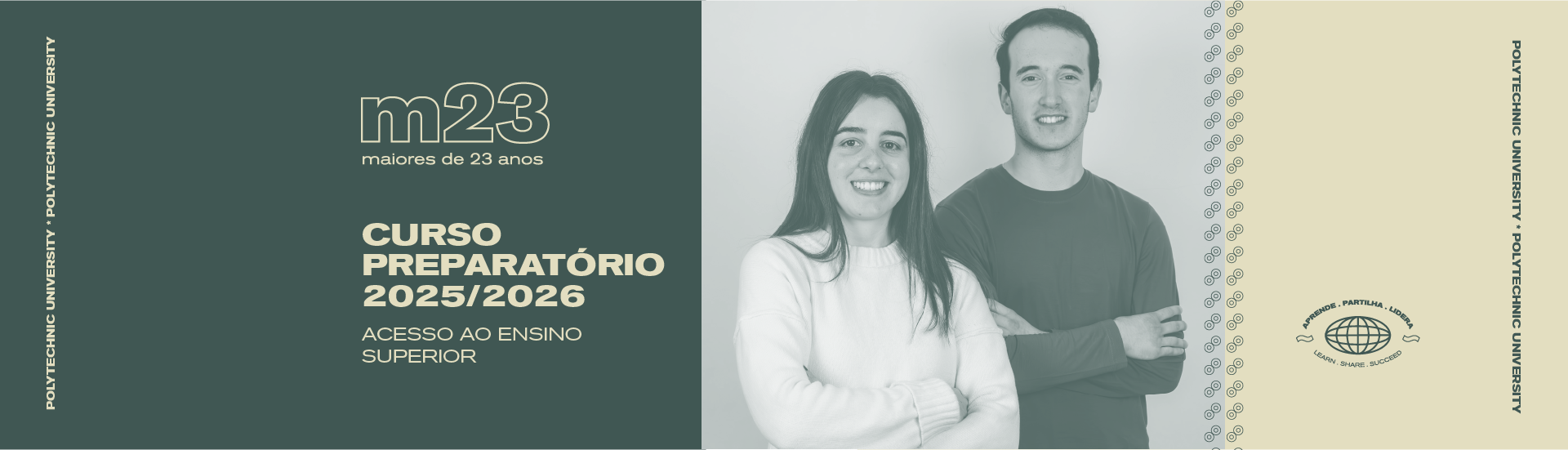 Encontram-se a decorrer as candidaturas para o Curso Preparatório para as Provas M23 que tem tem como objetivo preparar os seus formandos para as provas de Cultura Geral e de Conhecimentos Específicos, no âmbito das provas destinadas a avaliar a capacidade para a frequência dos cursos superiores do Politécnico de Leiria para Maiores de 23 anos (Provas M23).