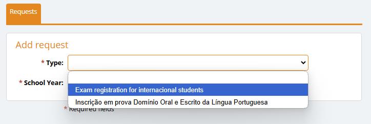 Step 3: Select “Exam registration for international students”, the “School Year” and the “proofs”