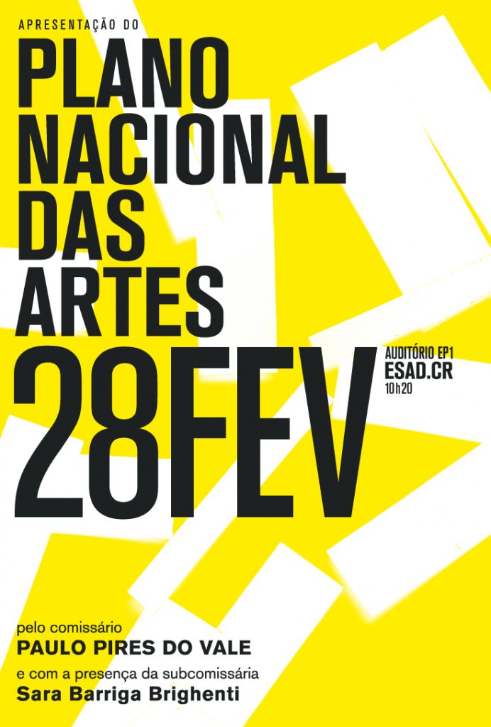 Plano Nacional das Artes is being developed, in articulation and leveraging their cooperative action, with the Plano Nacional de Leitura, the Plano Nacional de Cinema, the Programa Nacional de Educação Estética e Artística, the Programa de Rede de Bibliotecas Escolares and the Rede Portuguesa de Museus.