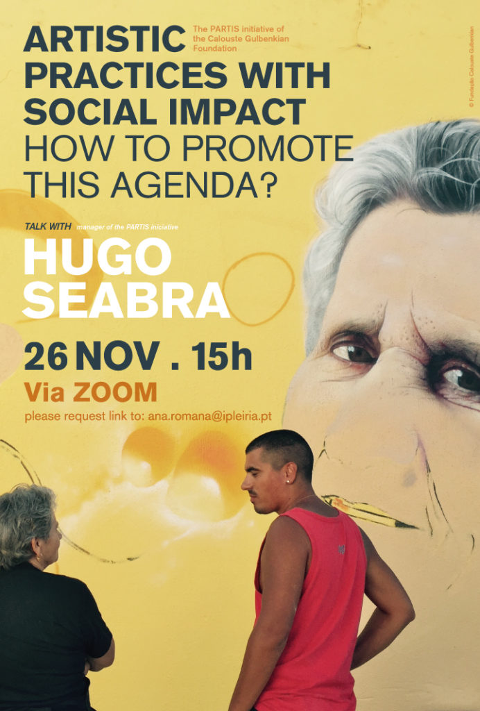 Talk with the manager of the PARTIS initiative – Artistic Practices for Social Inclusion – by the Calouste Gulbenkian Foundation. This initiative “supports, through subsidies and training actions, organizations that develop projects whose central methodology places artistic practices (fine arts, photography, video and / or performative) at the service of social inclusion.”