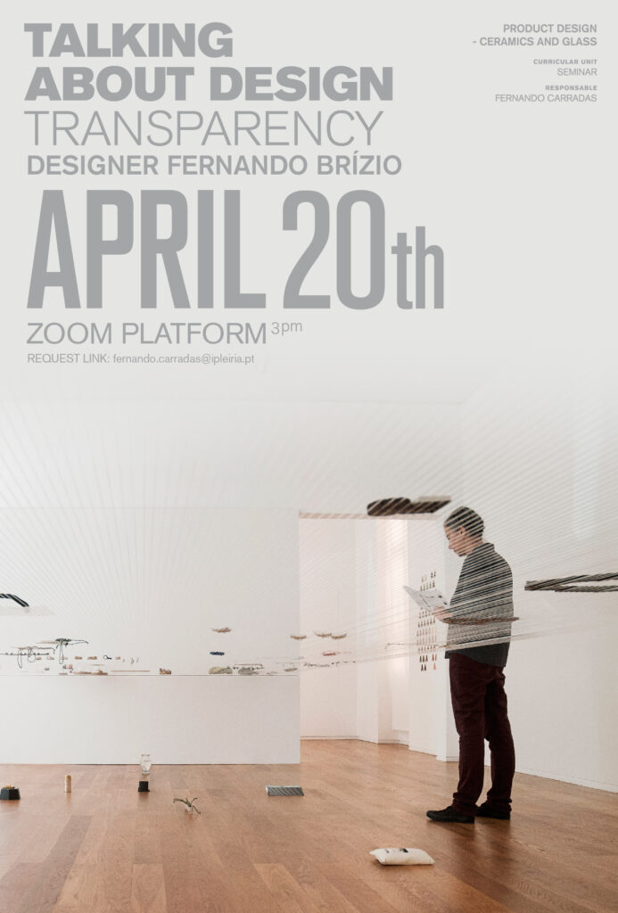 Fernando Brízio has a degree in Equipment Design from the Faculty of Fine Arts of the University of Lisbon, and a specialist degree in Product Design and Technology from the University of Aveiro. He was coordinator of the Scientific Design Area, of the Degree in Industrial Design and of the Master in Product Design at ESAD.CR. His work, sometimes developed independently of the commission, includes objects, exhibitions, scenarios, interior spaces and exhibition curatorship, and has been published internationally. He has exhibited and participated in juries and conferences inside and outside the country. He is part of the permanent collections of MUDE – Museu do Design e da Moda, Lisbon, and of IMA – Indianapolis Museum of Art, among others.
