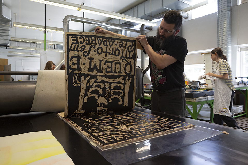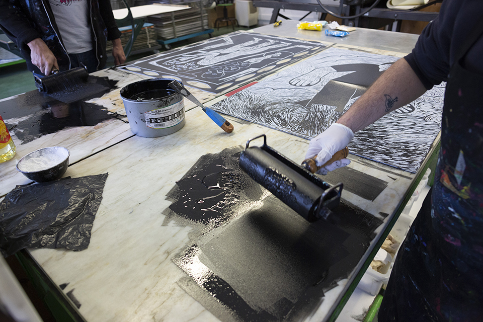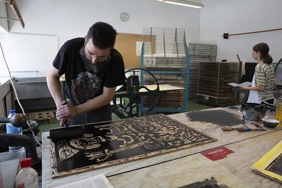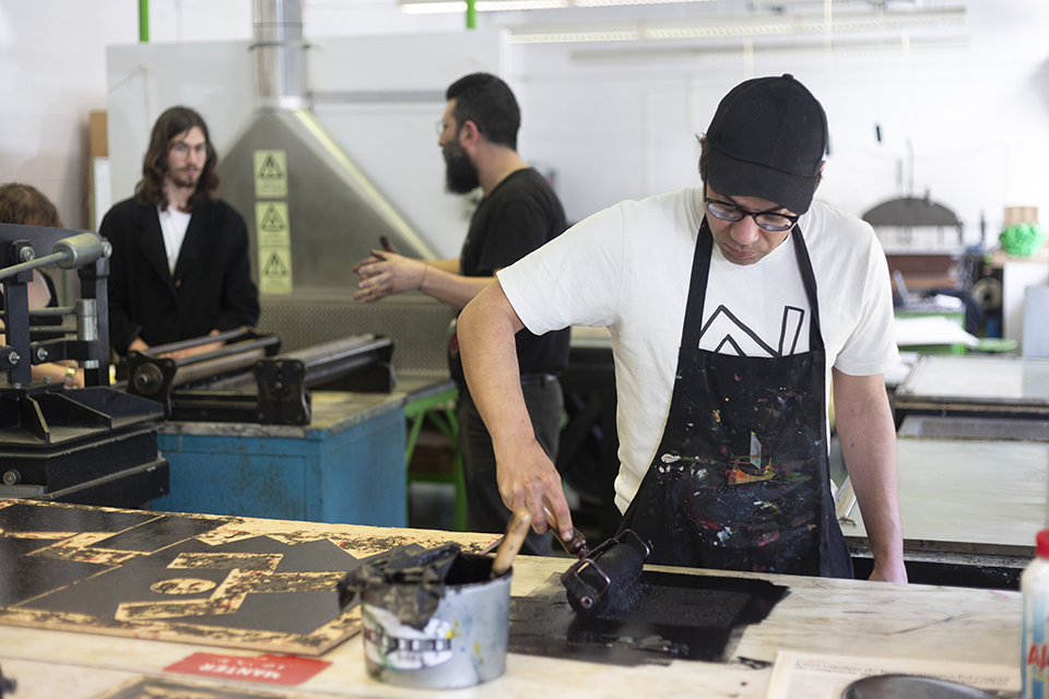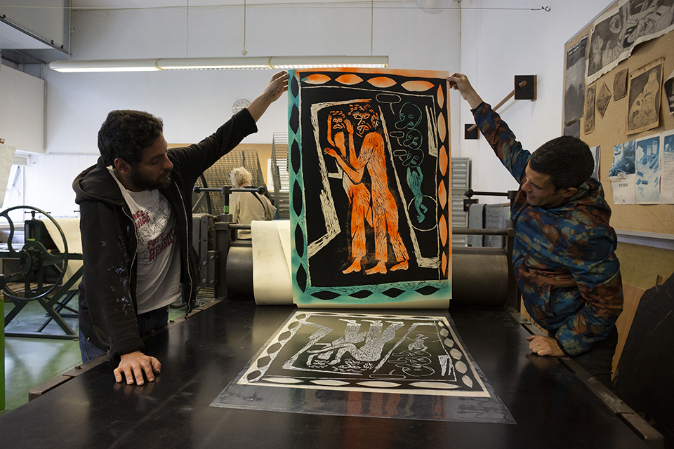 In each session we will have 2 graphic artists working at the same time, enlightening those present (with sessions open to students and the school community in general) about their methods, printing their matrices generating a series of 20 tests.