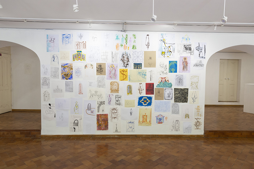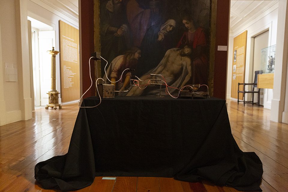 The work sessions, during the period of the artist residency, took place in the attic of the building of the Hospital and Caldas Museum. They started with research into the museum’s tangible and intangible heritage, followed by fieldwork to explore various aspects of the construction of the site-specific work.