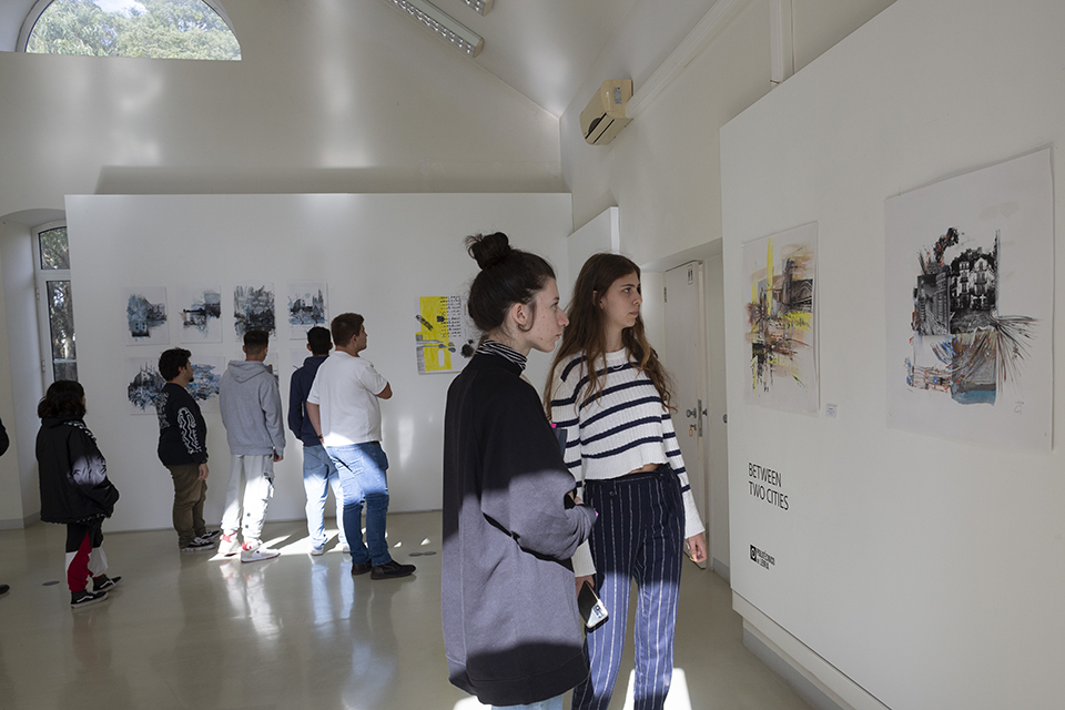 “Between Two Cities” deals with attempts to create an image that is the result of the juxtaposition of two cities, the host city Caldas da Rainha, and the home city of each Erasmus student.