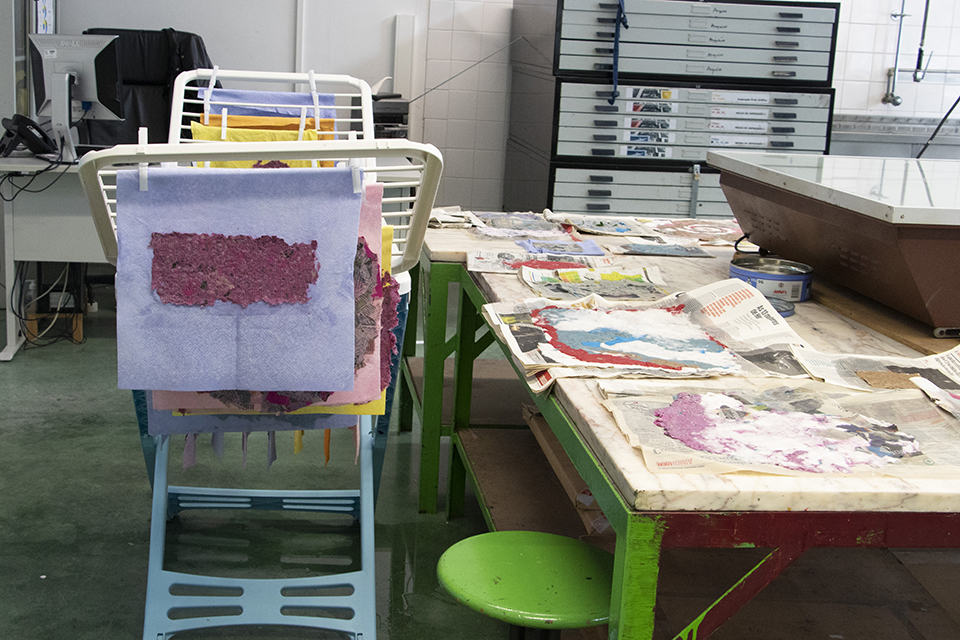 The objective is to expand the universe of printing support, in a logic of experimentation using recycled materials. The objective is to demonstrate how this recycling technique is capable of expanding the plastic expression of the sheet of paper. We also intend to explore the creativity of each leaf through: weight, size, texture, pigment and shape.
