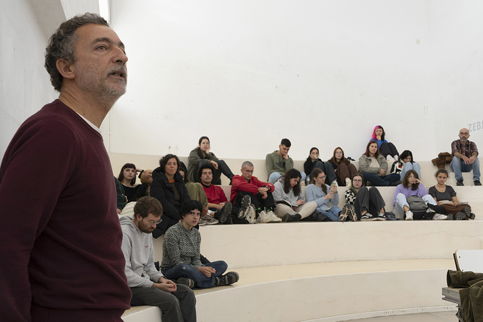 Performance-lecture with António Poppe (b. 1968, Lisbon), poet, visual artist and performer, based on his continuous, empathetic practice, in permanent association with the languages of the world and the world of languages.