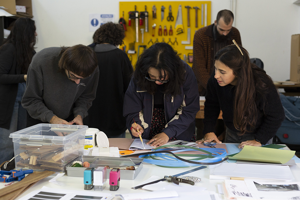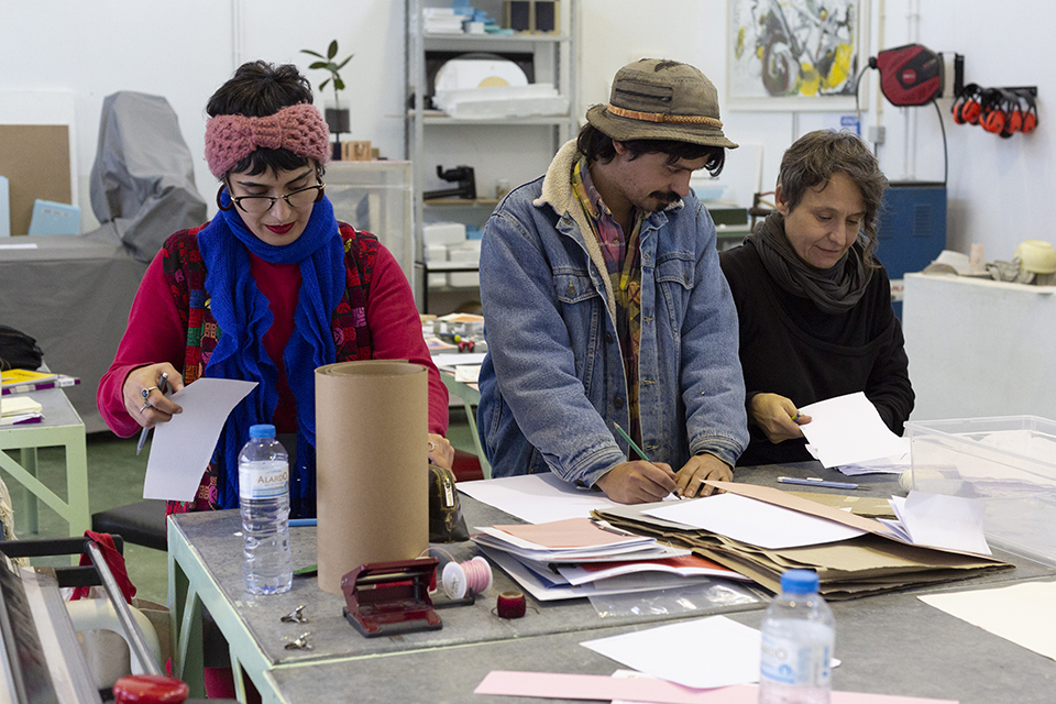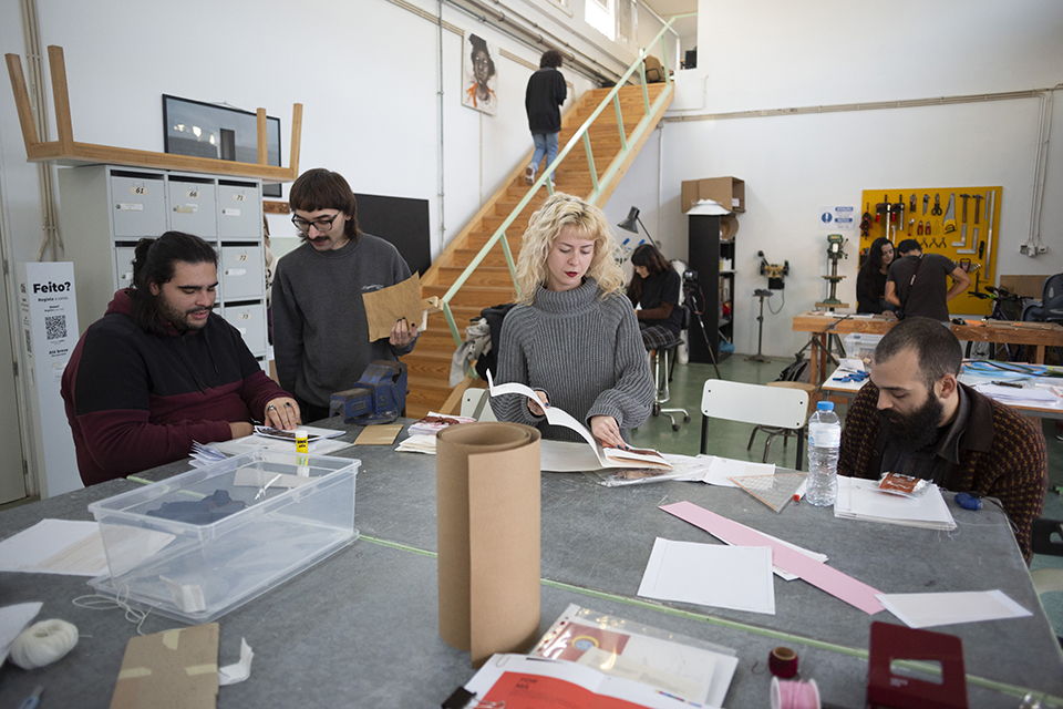 No âmbito da UC de Seminário de Metodologias de Investigação do Mestrado em Artes Plásticas iremos trabalhar com as Éditions N’importe Quoi, uma micro editora de livros d’artista e insaciável construtora de diários gráficos a partir de descartes e aparas provenientes da indústria local. A oficina permitirá uma troca entre artistas, cujo resultado final será a criação de um suporte de registo dos processos desenvolvidos ao longo do semestre. O workshop é aberto à comunidade escolar e àqueles interessados em experimentar metodologias de encadernação criativa.