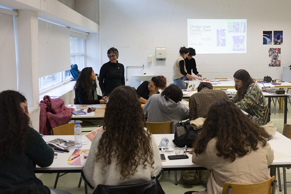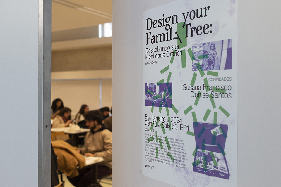 Through the construction of a “design family tree”, participants are invited on an introspective journey through their references – designers, movements, films, books, music, experiences, stories or narratives – that influence their work as future designers. By this mapping, a reflection is proposed on diversity and how race, gender, class and other intersectionalities emerge as layers that relate to design. The workshop, co-ordinated by Susana and Francisco and Denise Santos, will take as its starting point their research within the context of the Masters in Graphic Design at ESAD.CR.