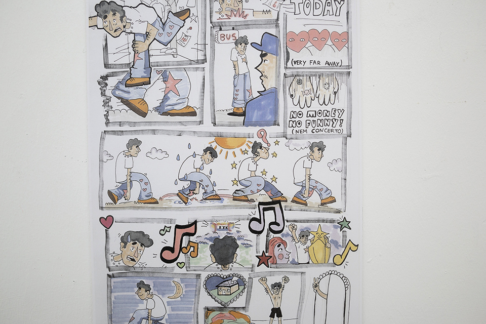 Jammin COMIC JAM is for creative comic book lovers. It brought together students from ESAD.CR and 2 guest authors in the same space to do what creative people do best, produce while exchanging ideas: a comic board each, while benefiting from opinions and know-how. A theme was given and each person produced freely for 6 hours. It resulted in a publication and an exhibition held in August 2023 at the Hospital e das Caldas Museum (as part of the ESMAGA event), which is now repeated at ESAD.CR. The publication “Sai do Armário”, in digital version and in limited printed edition, brings together the production carried out during the event: the works of participating students, guests Ana Margarida Matos and Rita Alfaiate, as well as a visual essay by Teresa Amaral, a essay written by Pedro Vieira deassumes a strong international commitment.
