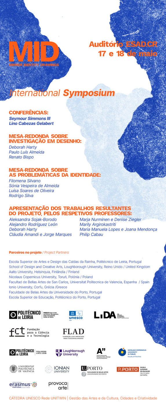 MID Mirror Identity Drawings is a project involving students and professors from eight European universities in the arts, from very different geographical and cultural contexts. It aims to explore the subject of identity as explored through the medium of drawing. As part of the Unesco Chair, the MID Symposium, now being held at ESAD.CR Escola Superior de Artes e Design das Caldas da Rainha, is a presentation of this project, and it includes the attendance of several international experts in the field of Drawing.