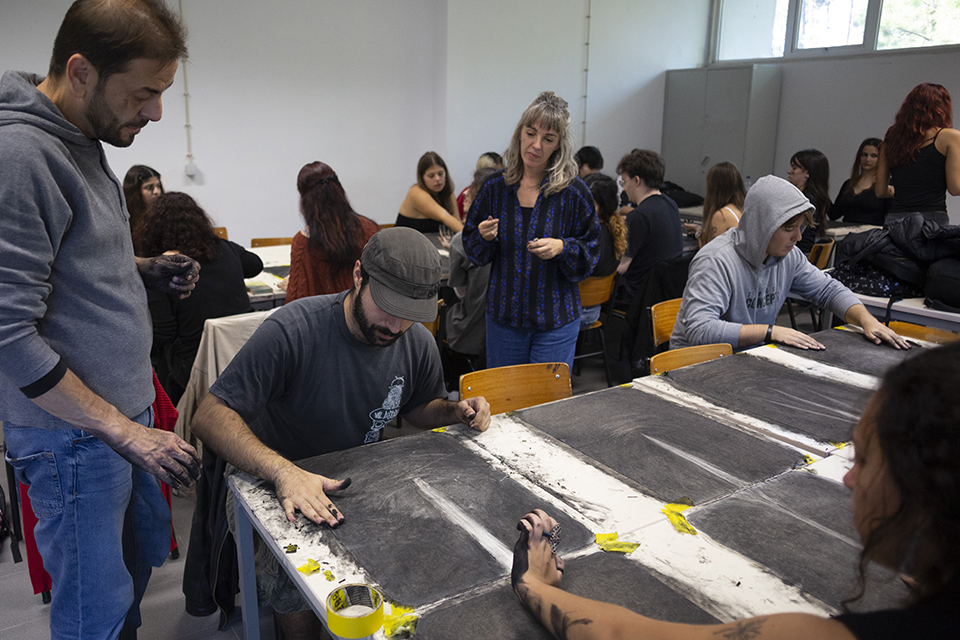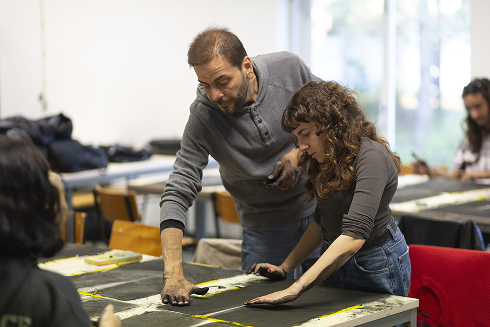 The workshop aims to develop practical exercises that will help students develop a contemplative relationship with the images they create. We will follow a path that shows how colour emerges from the movement between light and dark, which are expressed through gestures, revealing form and constructing the image. Through the experience of the exercises and contact with certain materials, the students should acquire a new relationship between light and dark, more awareness and freedom in gesture, a relationship between the body and the environment, the ability to understand symbolic images at the level of making, in order to find cohesion and integration between the idea thought up, the feeling expressed and the work realised. The contents of the workshop will be expanded to include drawing, photographic images and moving images.