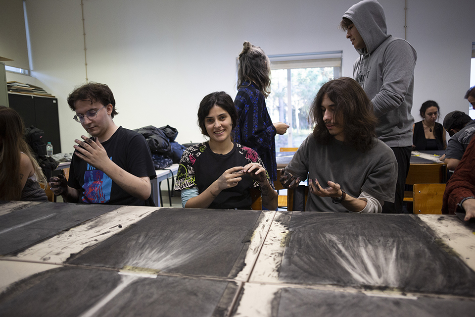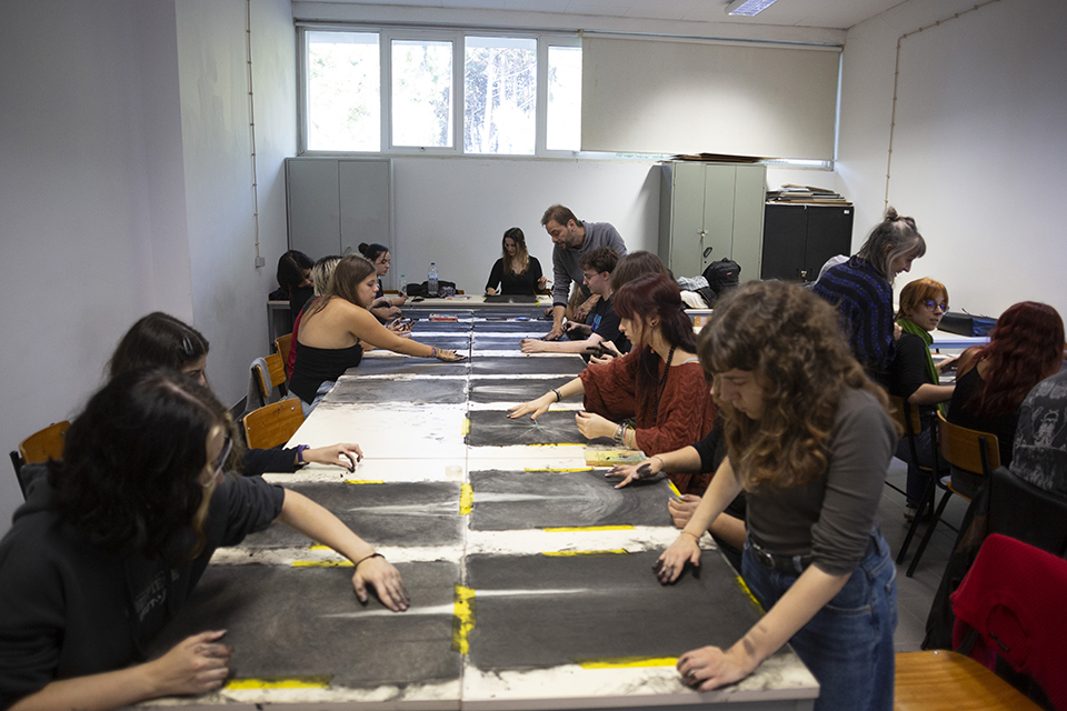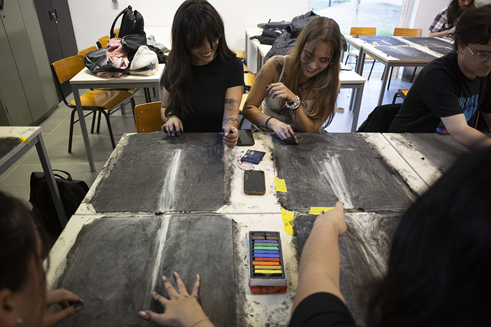 The workshop aims to develop practical exercises that will help students develop a contemplative relationship with the images they create. We will follow a path that shows how colour emerges from the movement between light and dark, which are expressed through gestures, revealing form and constructing the image. Through the experience of the exercises and contact with certain materials, the students should acquire a new relationship between light and dark, more awareness and freedom in gesture, a relationship between the body and the environment, the ability to understand symbolic images at the level of making, in order to find cohesion and integration between the idea thought up, the feeling expressed and the work realised. The contents of the workshop will be expanded to include drawing, photographic images and moving images.
