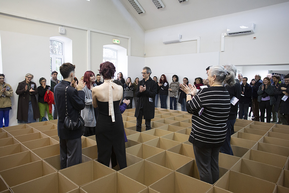 This journey, which is also a pedagogical exercise crossed by several curricular units (history of contemporary visual arts, cultural programming and production project, artistic and cultural mediation) and classes of different years, forces us to think about the past and the future with the same opening. The process involved visits to exhibitions, recognition of spaces, consultation of collections, visits to reserves, meetings with curators, producers and conservators, historical research, conceptual definition, contact with artists, selection of works, writing texts, exhibition planning, support to creation, assembly dynamics and mediation actions, as well as with a particularly special partnership in content design.