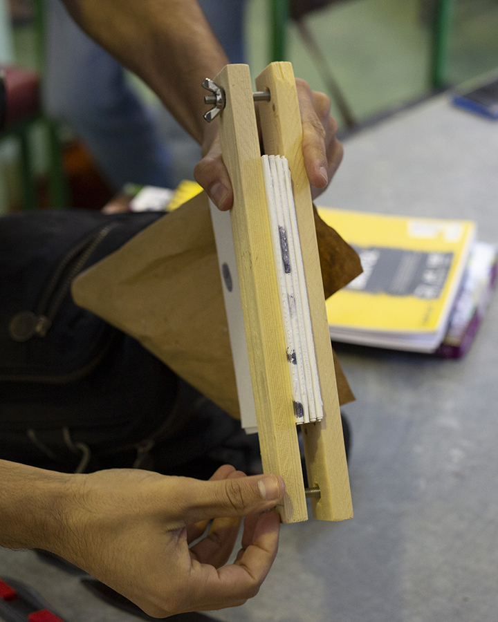 Éditions n’importe quoi is a micro publishing project for artist’s books and notebooks founded in April 2019 by Laura Figueiras and Kevin Claro. Its main objective is to build objects by reusing paper, cardboard, fabrics and plastic, through partnerships with local industries and organisations that give them access to surplus and discards. To date, they have built hundreds of graphic diaries and twenty-two editions of artist’s books. Some of these editions have only had one copy, others 35, which is (so far) the maximum number of copies produced. The project is currently based at the Caldense printing house Gracal, where they have a studio and access to most of the raw materials they use. This workshop will see the launch of the collective project Edições da Sala 5, Vol. XIV, to be published from the graphic material collected.