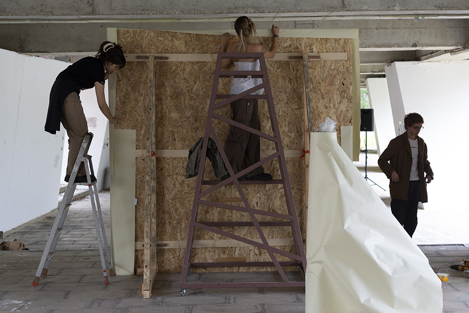 Also within the school, in the Underground space, the SONOSCENA project proposes the creation of an open plastic and audiovisual studio, inhabited by the sculptures of Daniel Costa, the soundscapes of André Pires, and live painting by Lara Tomás and Moisés Feliciano.