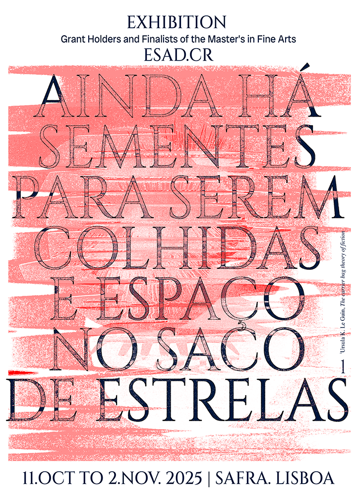 As part of the exhibition of finalists and scholarship holders from the Master’s in Fine Arts at ESAD.CR, we held a conversation between teachers, alumni, finalists, and institutional partners. We propose to open a space for sharing and reflection on emerging artistic practices, paths that are drawn from the school, and possible connections between creation, research, and community.