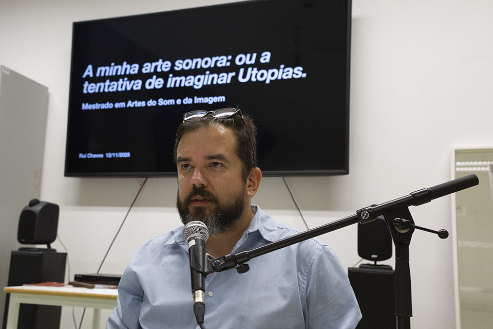 In this presentation, Rui Chaves offers a reflection on his artistic practice as an artist, teacher, curator, and writer, exploring listening as a critical and imaginative gesture. His sound art asserts itself as a field in process—including his art-to-come—shaped between essay and performance, the everyday and fiction, desire and uncertainty. Taking listening as a way of inhabiting and thinking about territory, Chaves summons sound as a force of resistance and hope, capable of staging possible worlds. His work thus proposes to listen to the present in order to imagine shared futures.