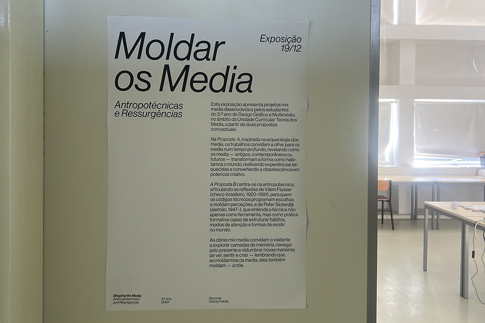 This exhibition presents mix media projects developed by third-year students of Graphic and Multimedia Design, within the scope of the Media Theory course, based on two conceptual proposals.