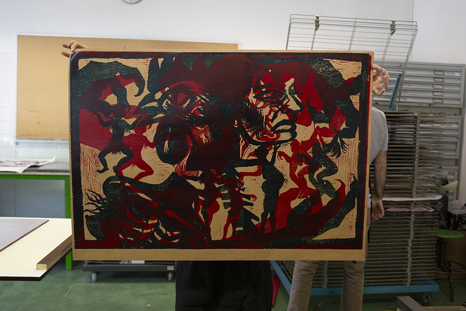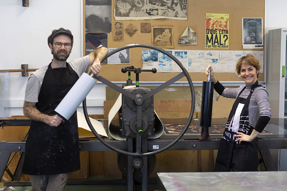 In each session we will have 2 graphic artists working at the same time, enlightening those present (with sessions open to students and the school community in general) about their methods, printing their matrices generating a series of 20 tests.