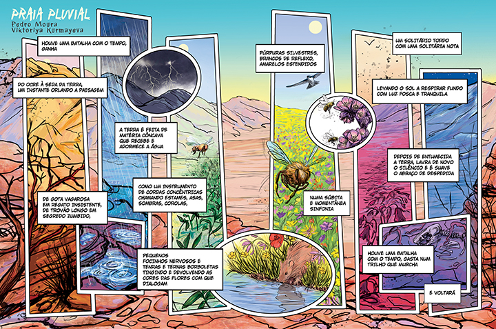 There is no such thing as “mediumless” stories. These must have a tangible body, expressed, i.e., be out here in the outside. A story in one medium is not the “same” in another: they may share common traits but the journey is not the same. In comics, that means multiple images on a page (whatever the final support this may have, from paper to holograms) that are then put together through the reading act. Writing and drawing comics, or in other words, composing comics is to prepare a map that will provide a specific journey for the reader. These are fragments of an immense Atlas of comics-making, of meaning-weaving through the composition art of comics. Find the one best suited for you.