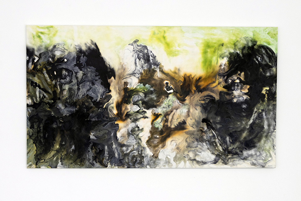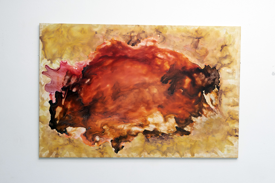 After a whole lifetime of work, I applied to the M 23 competition, and was then able to do my degree and master’s in fine arts, in which I was able to work essentially with drawing, always using materials that oscillated between the liquid state and the solid state that is characteristic of the drying of the first state. Although, I never quite knew what I was going to do at the beginning of each new drawing, I discovered the meaning of drawing as an event, as the paints were handled on a support, and the place they took me to was almost always close to my childhood experience.