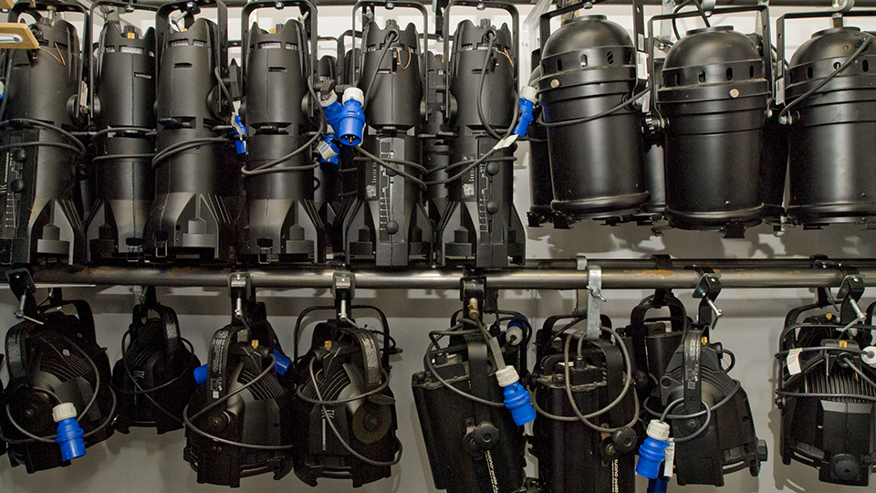 The workshop has several lighting equipment, sound design, rigging, stage machinery, allowing and supporting the theatrical and/or performing practice developed by the Theatre course.