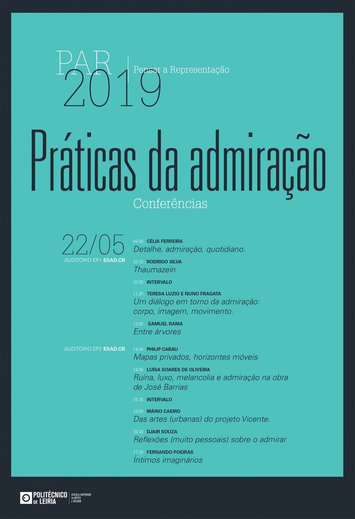As conferências PAR este ano incidem sobre as práticas da admiração. Como admiramos? Porque admiramos? O que admiramos? O que nos impele ou impede o admirar? Qual o lugar da admiração e das suas práticas no mundo de hoje? Qual o lugar da admiração na nossa própria prática profissional, artística, pedagógica, de investigação, de cidadania ou outra? Todas estas questões – e outras – podem para aqui ser trazidas, pensadas, podendo-se convocar também outros conceitos vizinhos, como modelo, hierarquia, inspiração ou estímulo, indiferença, influência, comparação, atenção, etc.