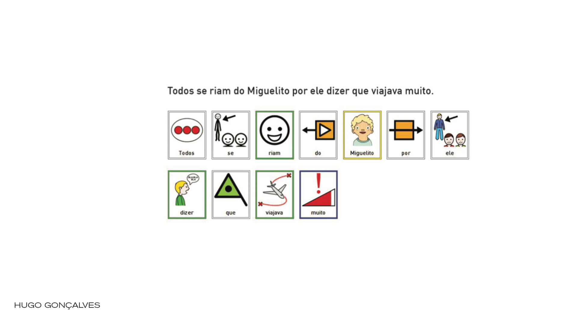 Esta dissertação parte de uma perspetiva socio-histórica da linguagem e comunicação, tendo como foco primordial a investigação da forma como diferentes sistemas de comunicação alternativa podem melhorar o quotidiano de crianças com perturbações do espectro de autismo (PEA). O autismo constitui uma perturbação do foro psicológico que se expressa num desenvolvimento de diferentes graus de afetação do indivíduo em relação às interações familiares e sociais, revelando características comportamentais muito específicas, e défices na comunicação e linguagem. Devido à dificuldade de diagnóstico desta patologia os tratamentos implementados nem sempre são os mais adequados ao grau de desenvolvimento da doença, contudo é muito importante o processo educacional de ensino alternativo, de modo a estimular a interação social e o desenvolvimento da autoestima e da comunicação, através dum acompanhamento didático-pedagógico constante e adaptado, nomeadamente nas idades escolares. Objetivos: o objetivo primordial deste estudo visa a criação de um objeto pedagógico adaptado a indivíduos com incapacidade cognitiva e posterior avaliação do seu contributo para o desenvolvimento de crianças com perturbações do espectro de autismo. Material e Métodos: para a concretização desta dissertação propus-me à criação de um livro infantil designado “A Viagem do Miguelito” caracterizado por uma linguagem específica, com o objetivo de melhorar e adaptar ao máximo as suas características às capacidades de perceção de crianças com perturbações do foro cognitivo de modo a facilitar a comunicação entre si. O livro/jogo “A Viagem do Miguelito” foi apresentado a uma amostra de cinco crianças com autismo da Escola Básica Integrada Santo Onofre, Caldas da Rainha, com idades compreendidas entre os seis e dez anos, aos quais foi solicitada uma análise conjunta e final a cerca da história narrada no livro. A partir desta interação com o projeto desenvolvido iniciei o estudo observacional analítico, através da recolha de dados qualitativos e sua posterior análise e interpretação por inferência da amostra de investigação. Resultados: os resultados obtidos constataram que o livro/jogo aqui projetado constitui uma ferramenta viável para recurso de professores, terapeutas e familiares de crianças com perturbações do espectro de autismo. Conclusões: este estudo revelou que as ilustrações são um ponto fundamental de ajuda para indivíduos com dificuldades cognitivas, uma vez que a produção textual nestes casos se torna um meio de difícil compreensão. Estas ilustrações devem ser simples o que as torna percetíveis mais facilmente e a inserção de materiais com textura são uma mais valia, criando maior interesse e interação das crianças com PEA.