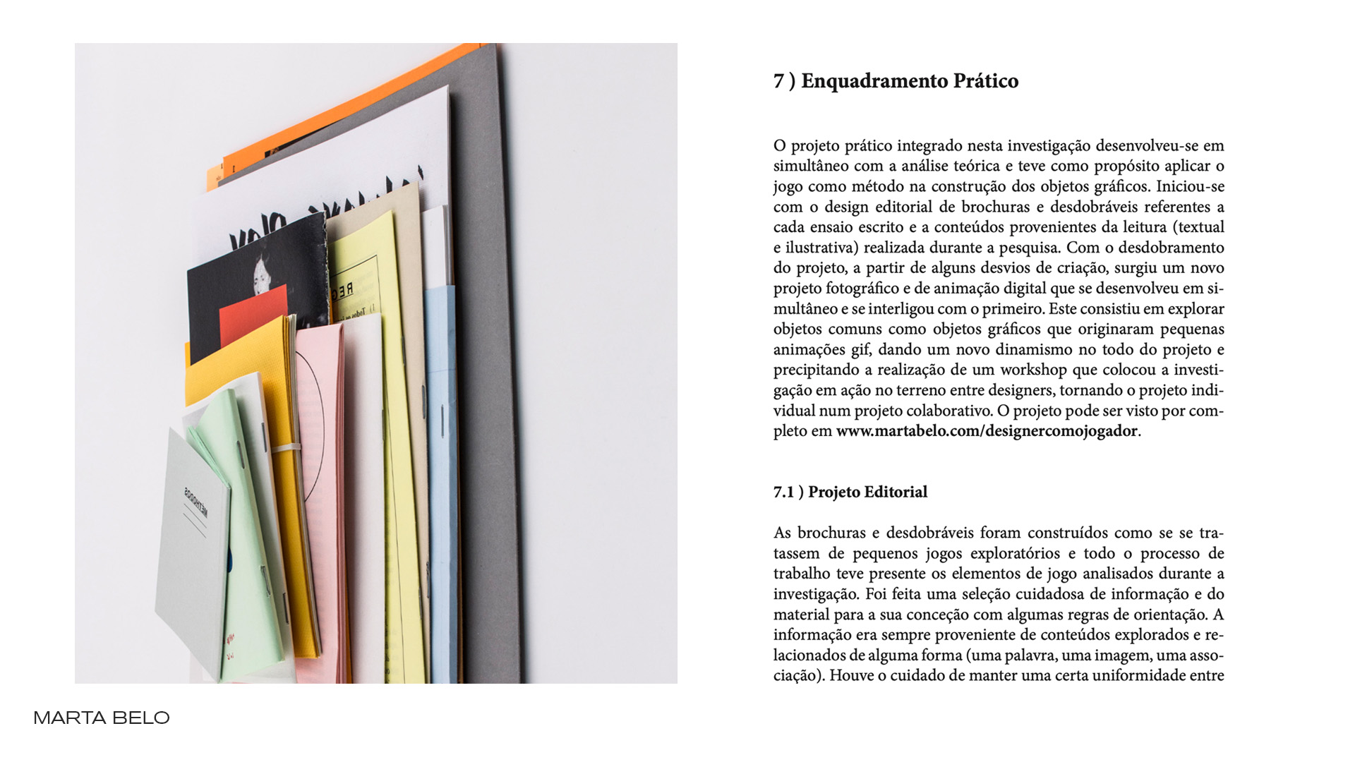 Tal como no jogo a linguagem no design não é passiva, pressupõe ação. A presente investigação coloca o designer como jogador para analisar o jogo como método e avaliar a sua significância na construção da identidade individual e social do designer gráfico. O projeto foi desenvolvido como um sistema de jogo composto por 15 ensaios teóricos e 30 ensaios práticos. Os ensaios teóricos dividem–se em duas partes, o enquadramento histórico e crítico e a análise ao jogo como atividade social e educativa. A primeira parte tem como objetivo compreender o papel do designer e a sua educação. A segunda parte analisa os vários elementos de jogo e avalia-os como método de trabalho. Os ensaios práticos apresentam-se em 16 editoriais e 13 animações, que exploram o jogo como método na conceção dos objetos gráficos, e um workshop, que explora o jogo como método na ação e educação do designer gráfico.