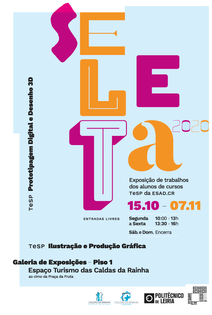A Exposição Seleta 2020, patente de 15 de Outubro a 7 de Novembro na galeria do Espaço Turismo das Caldas da Rainha — Piso 1, apresenta uma seleção de trabalhos realizados pelos alunos do curso TeSP – Ilustração e Produção Gráfica e do curso TeSP – Prototipagem Digital e Desenho 3D da ESADCR.