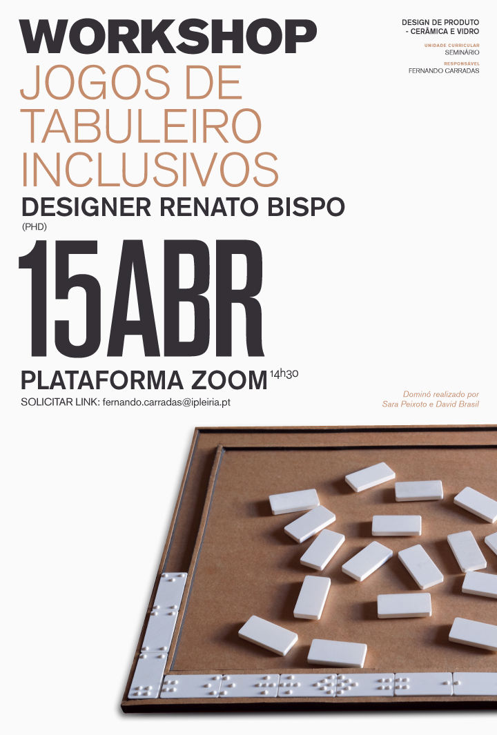 Neste workshop, partindo do design inclusivo, os alunos serão convidados a refletir sobre jogos de tabuleiro inclusivos enquanto objetos que podem estimular o desenvolvimento cognitivo a socialização entre crianças com e sem incapacidade visual. Todos os elementos de jogo serão abordados de forma a permitir que se uma criança cega estiver a jogar com uma criança que vê, nenhuma tenha (des)vantagem relativamente à outra. Esta premissa irá nortear o desenvolvimento de peças, tabuleiros e/ou outros elementos que substituam com a mesma fluidez as opções tradicionais de peça branca e peça preta.