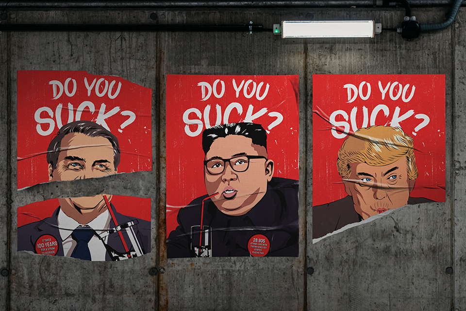 28,935 palhinhas foram deitadas fora desde que começou a ler isto. Uma pessoa usa 38,000 palhinhas em média, durante a sua vida. Uma palhinha demora entre 100 a 500 anos para se decompor. O Consumo de palhinhas diário pelo Estados Unidos, é suficiente para dar 2,5 x à Terra. 500 Milhões de palhinhas usados diáriamente pelos Estados Unidos. 36,4 mil milhões de palhinhas usadas anualmente pela União Europeia. • Mil milhões de palhinhas usadas anualmente por Portugal. Dados os factos, falta saber se “Do you Suck?”