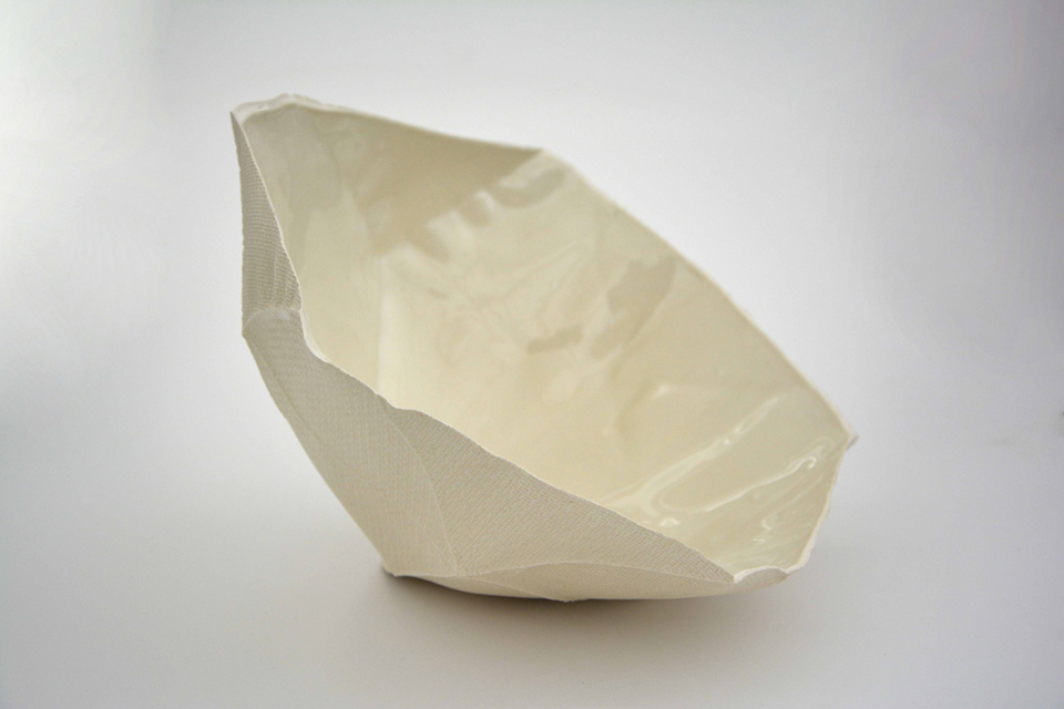 Desenvolvimento de peças cerâmicas de porcelana através da utilização de restos de têxteis tecidos, conformados por via líquida, em diferentes geometrias, por aplicação de estratégias construtivas aparentemente precárias.