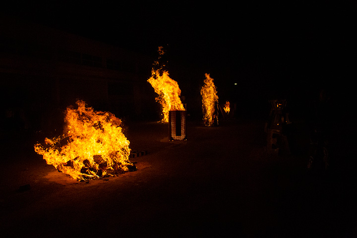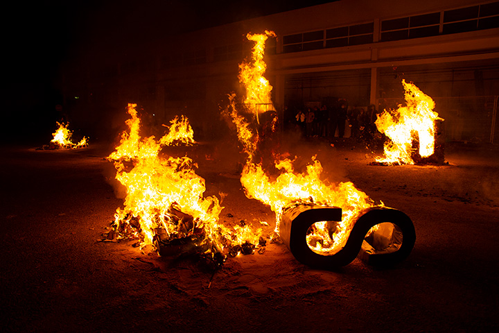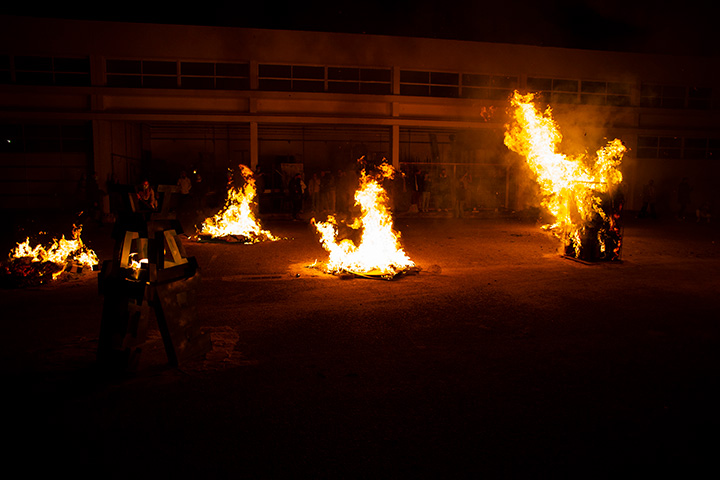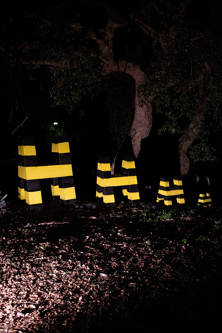 A 5ª edição do (CO)LABORA(L) procura explorar limitações e possibilidades da planificação de caracteres 4D, bem como a respectiva materialização. O resultado é um conjunto de instalações que propõem inicialmente uma dupla leitura visual, sendo possível observar posteriormente, in loco, o seu declínio estrutural. A escuridão nocturna será o cenário natural de uma existência efémera que terá como epílogo a destruição dos objectos através do fogo, permanecendo apenas a memória dos mesmos.