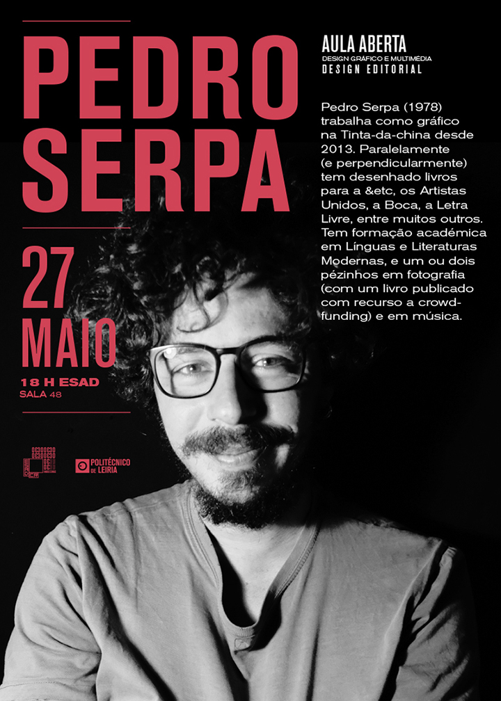 Pedro Serpa (1978) trabalha como gráfico na Tinta-da-china desde 2013. Paralelamente (e perpendicularmente) tem desenhado livros para a &etc, os Artistas Unidos, a Boca, a Letra Livre, entre muitos outros. Tem formação académica em Línguas e Literaturas Modernas, e um ou dois pézinhos em fotografia (com um livro publicado com recurso a crowdfunding) e em música.