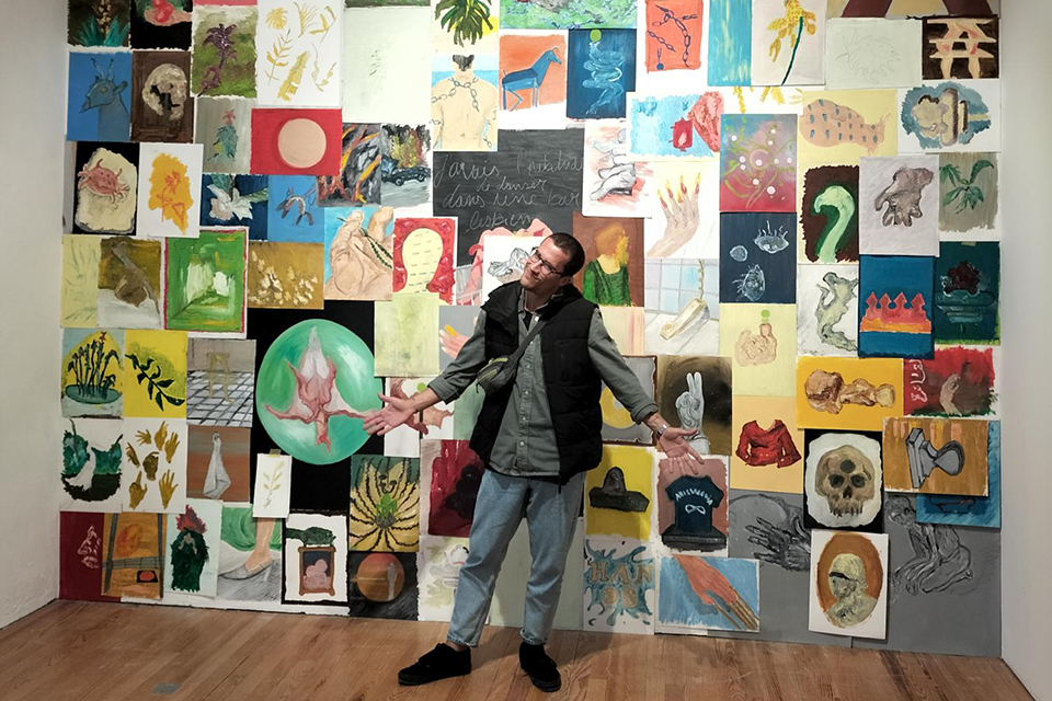 “É através da pintura e do desenho que o meu trabalho se desenvolve, exploro as ligações entre imagem e ecologia, trabalho na produção de imagens a partir da memória, narração ou ficção individual. Uso os meus arquivos pessoais para produzir imagens, sem me preocupar com a semelhança dos modelos”.
