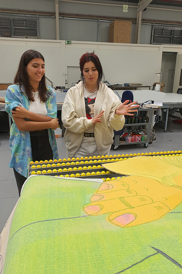 Numa parceria da ESAD.CR com a Santos Monteiro – Tailor Made Rugs, coordenada pelo professor Bruno Reis Santos e que envolveu todos os estudantes da disciplina de Projeto de Ilustração, Anna Spada, Laura Reis e Mariana Morais viram os seus projetos de carpete premiados a ganhar vida.