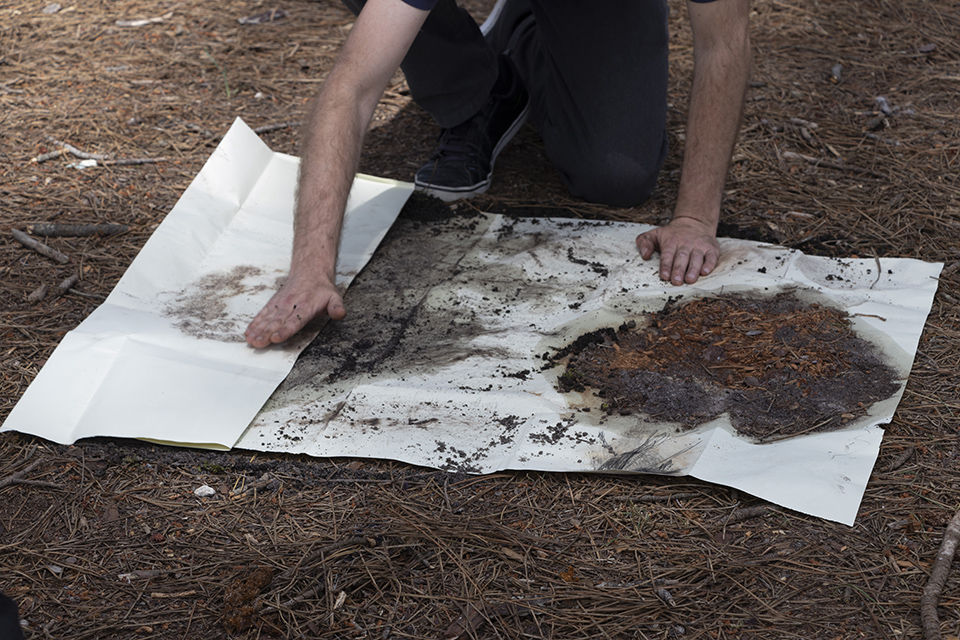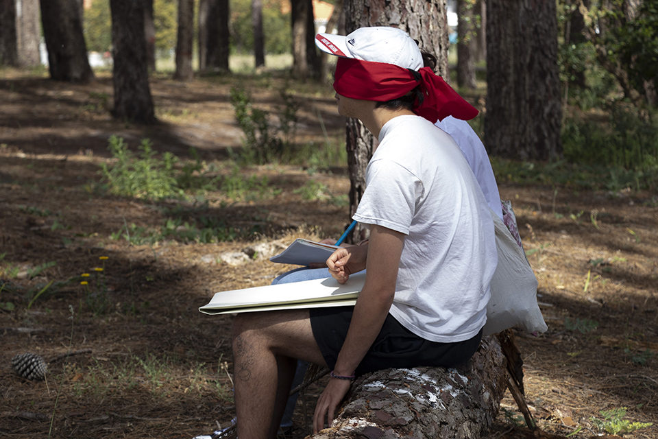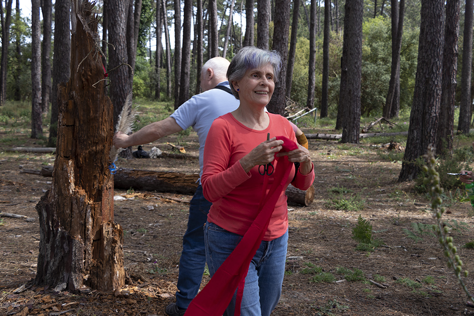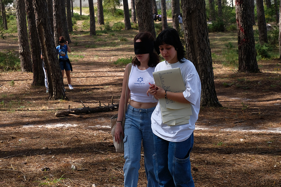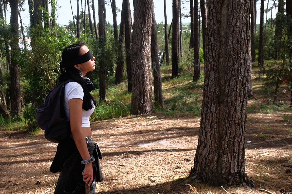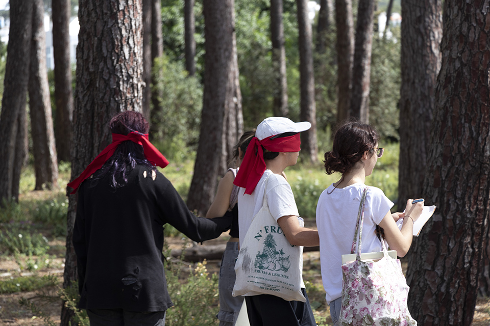 Na ESAD-CR e numa relação de “intimidade” com o pinhal, os participantes deste desafio estabelecem um percurso onde, através do desenho, exploram a perceção do corpo, do gesto, do som … numa confiança cega com o espaço.
