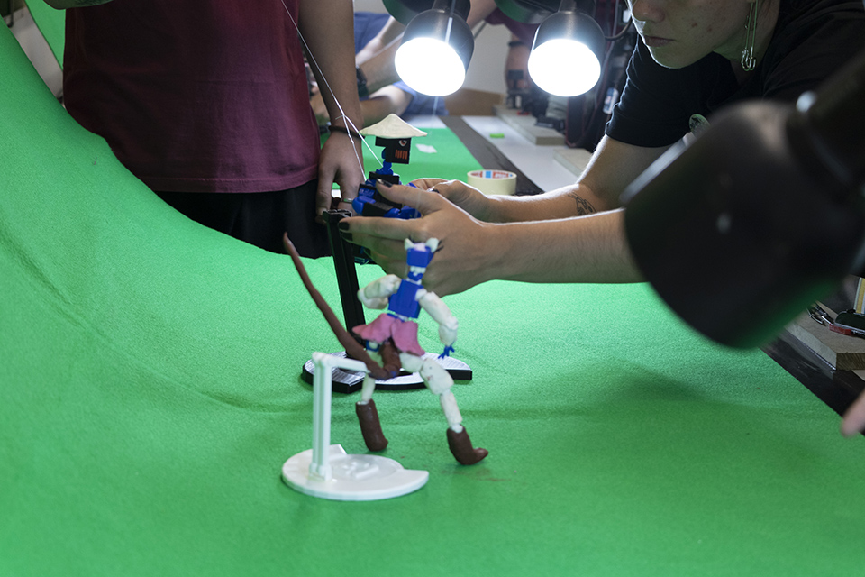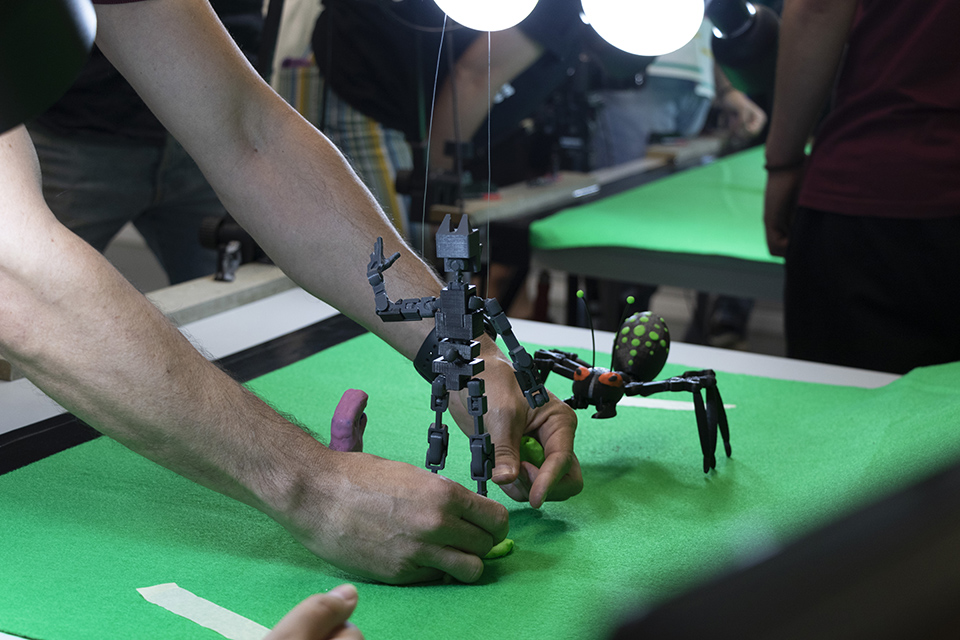 3… 2…1… FIGHT! A partir de peças produzidas por impressão 3D e da construção de acessórios em materiais moldáveis, são criados esqueletos de seres que se enfrentam numa arena, explorando a técnica de animação stop-motion.