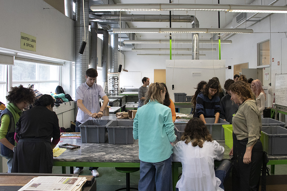 Gravar com… O papel reciclado é um processo de aprendizagem sobre reciclagem e uso de fibras celulósicas de papel e cartão usados para produzir papel novo. O objetivo é expandir o universo do suporte de impressão, numa lógica de experimentação através de materiais reciclados. O objetivo é demonstrar como esta técnica de reciclagem é capaz de expandir a expressão plástica da folha de papel. Pretendemos também explorar a criatividade de cada folha através de: peso, tamanho, textura, pigmento e forma.