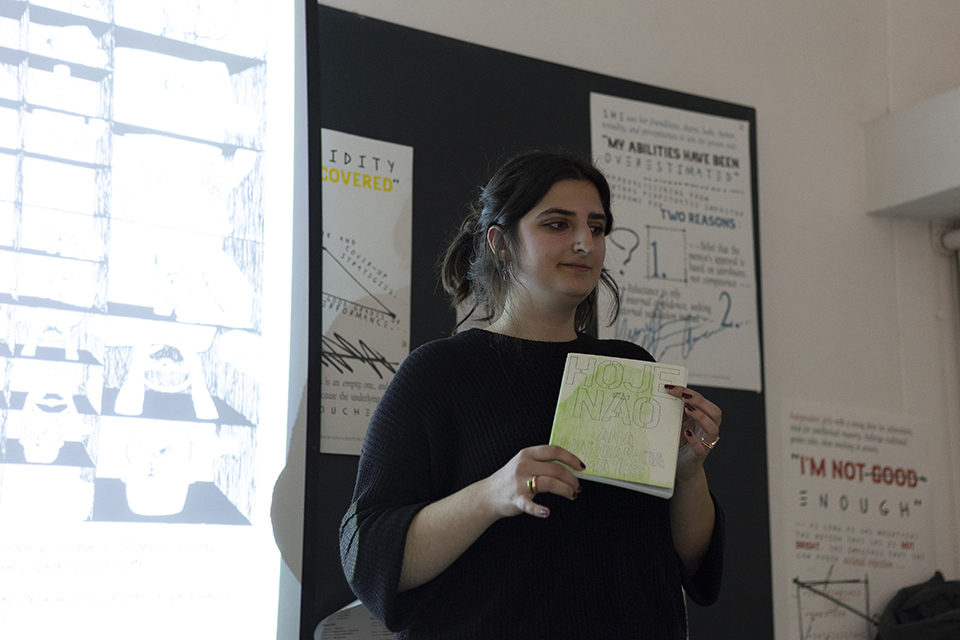 Ana Margarida Matos virá falar sobre Hoje Não, um diário criado durante seis meses de 2021, durante um dos confinamentos relacionados com a Covid 19 em Portugal. Em 2021, este título foi o projecto vencedor do concurso Toma lá 500 paus e faz uma bd, da Chili Com Carne, edição de 2021. A pretexto desta publicação a autora falará de outras publicações a solo ou colectivas, como “Kûshburger” (editoras Kûs, Letónia + Stripburger, Eslovénia) ou “Querosene” (Chili com Carne); e da sua prática artística, assim como da organização da Feira Autónoma que se realiza em Almada.