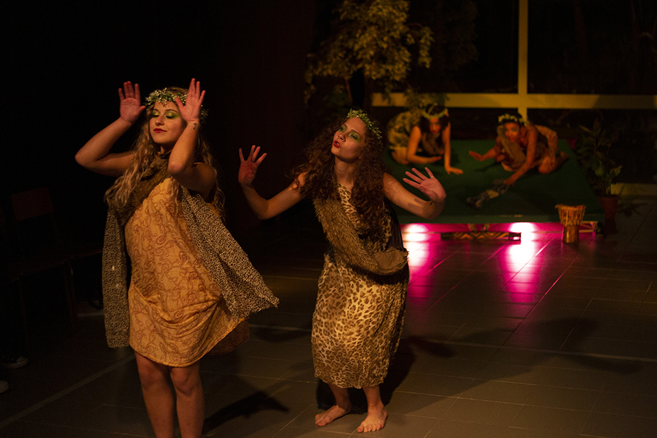 O nosso trabalho teve como ponto de partida, a dramaturgia do ator em cena, e fizemos várias improvisações, na procura da fisicalidade, da voz, do sentido de cada personagem. Várias questões se levantavam à medida que o processo avançava e havia sempre problemas para resolver, mas o trabalho colaborativo permitiu o pensar junto e encontrar soluções coletivamente. Foi desafiante e compensador. para o nosso processo de aprendizagem enquanto alunos de teatro.