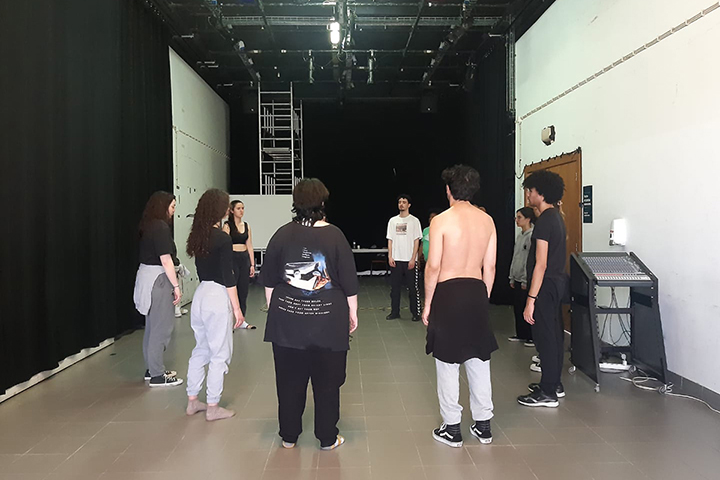 A aula de interpretação dos estudantes do 1.º ano tem como Professora da UC Sofia Cabrita. A exploração dos órgãos de sentidos, a realização de exercícios de concentração e imaginação levaram os estudantes à busca do estado criativo.
