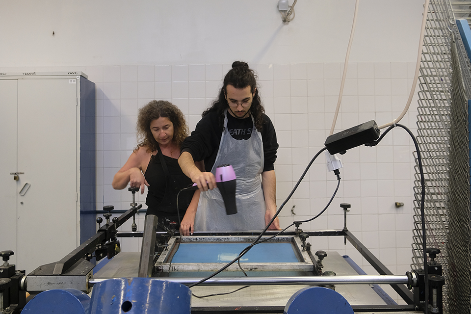 Exploração dos fundamentos práticos necessários para a impressão em serigrafia a uma cor.