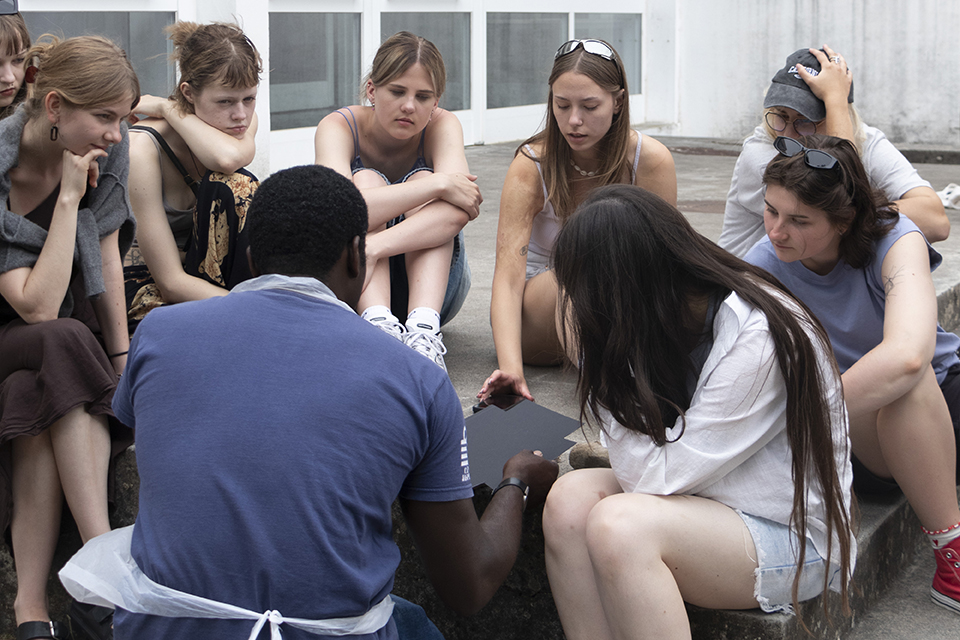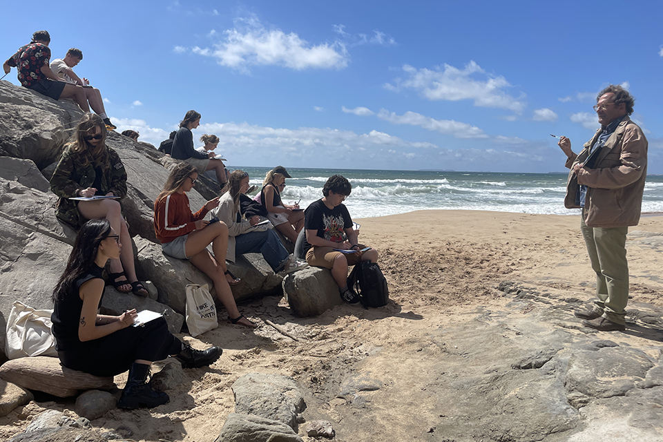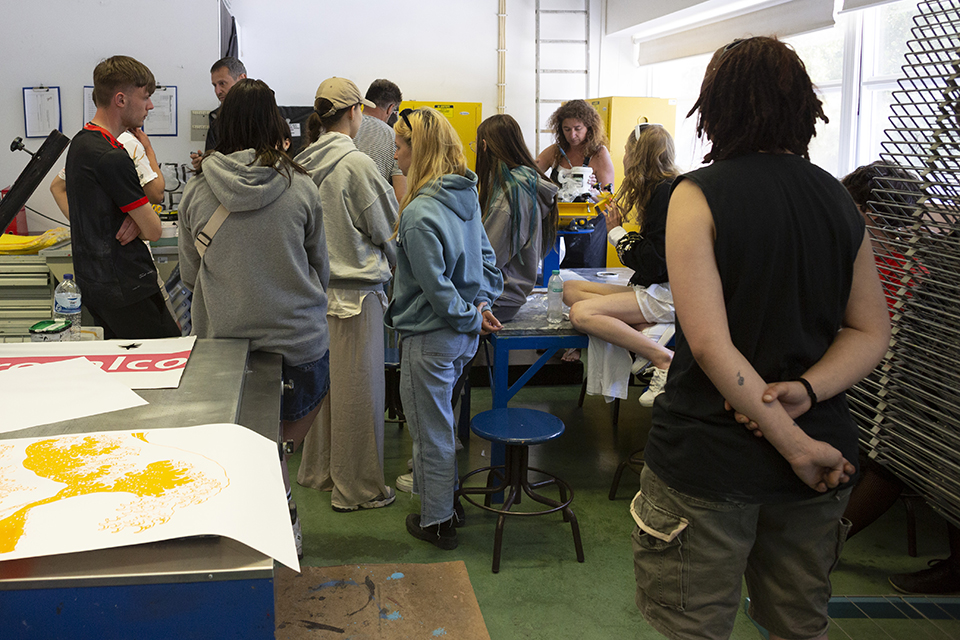 Workshops de Cianotipia e Serigrafia na ESAD.CR. Sustentabilidade na Prática de Surf na ESTM e CETEMARES. Ilustração na Praia da Areia Branca. Todos os materiais necessários serão providenciados pela organização.