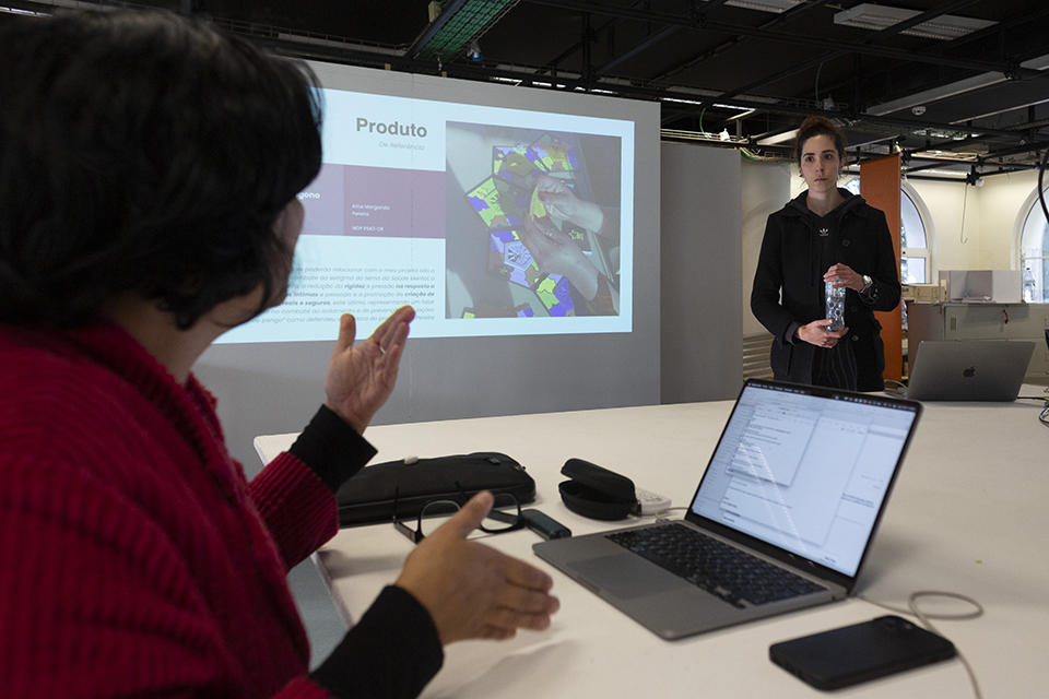 No âmbito de “(Des)construções”, os estudantes apresentam projetos que investigam o papel do design na desconstrução de estereótipos e preconceitos, buscando soluções inclusivas e adaptadas às necessidades diversas. André Leandro explora o uso da cutelaria artesanal como ferramenta inclusiva, aliando técnicas tradicionais e impressão 3D para desenvolver produtos personalizados. Alice Pereira, por sua vez, aborda a desconstrução de género através de objetos lúdicos que promovem a saúde mental e desafiam estereótipos junto ao público jovem. Esses projetos enfatizam a importância de uma prática de design mais empática e centrada nas diferenças humanas, reforçando o valor do design como