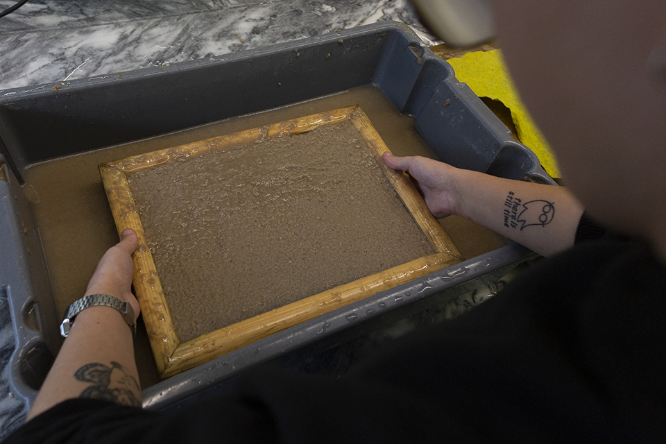 Workshop de pasta de papel do Moinho do Papel, oficina de fabrico artesanal de papel reciclado e/ou de algodão: corte ou rasgo do jornal; trituração da mistura do jornal cortado com a água para produção da pasta; fabrico das folhas e secagem no estendal. O workshop de pasta de papel do Moinho do Papel tem como objetivo a demonstração da produção de papel artesanal feita no Moinho, aliando práticas amigas do Ambiente, convidando a reciclar o papel e a perceber a sua utilização de forma criativa e sustentável.